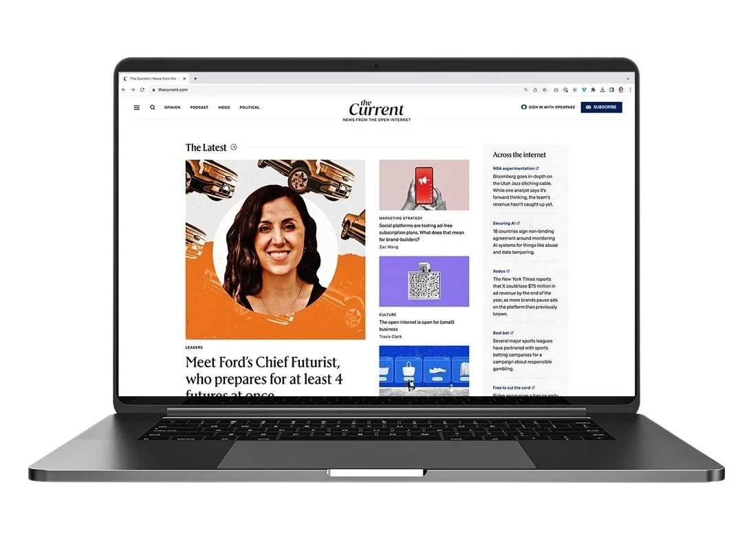 Launched in 2020, I branded The Trade Desk’s digital advertising news outlet, The Current. Now one of our biggest brand platforms, it boasts hundreds of thousands subscribers, its own podcast, and a major presence at industry events around the world (Cannes Lions, Advertising Week, etc.).